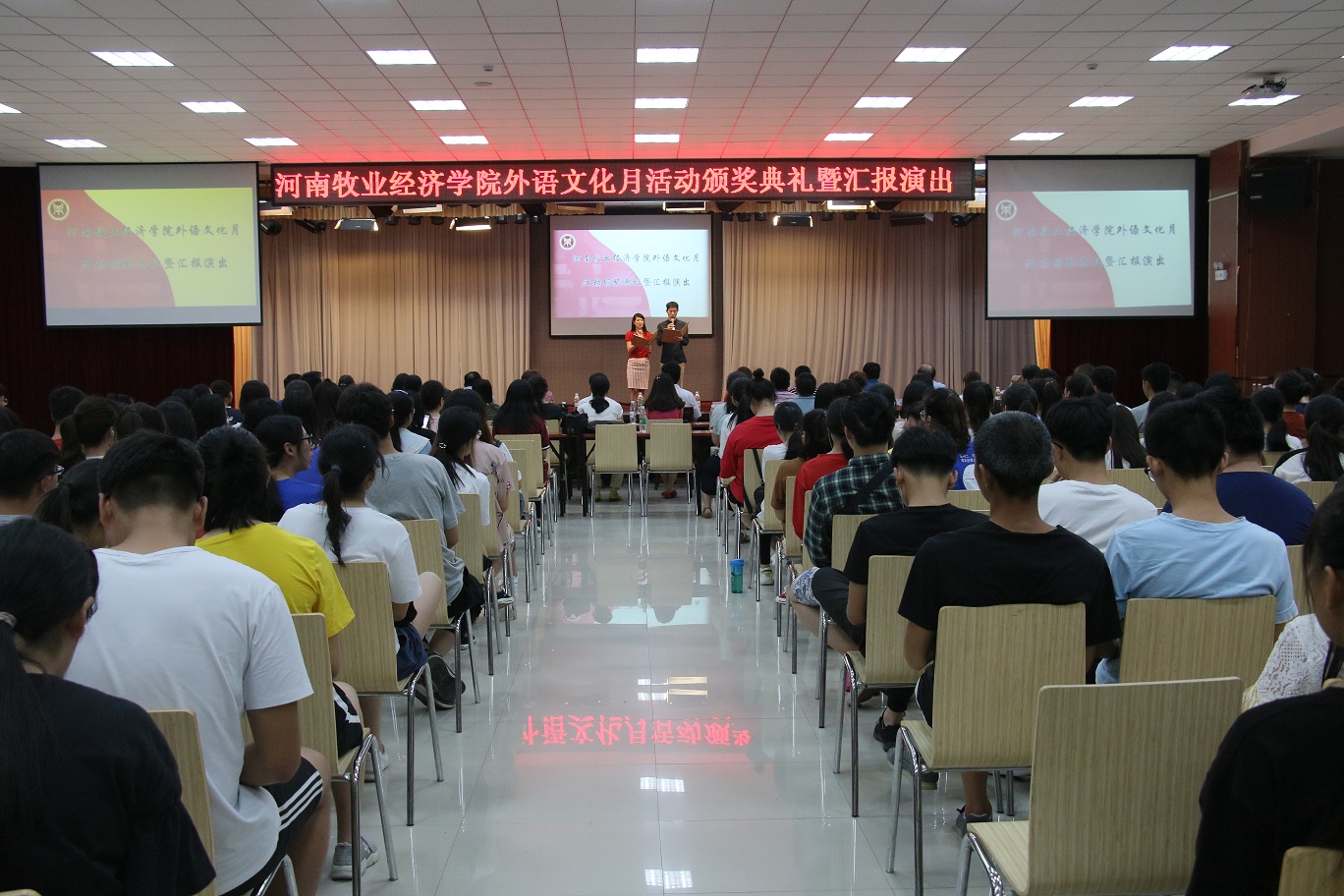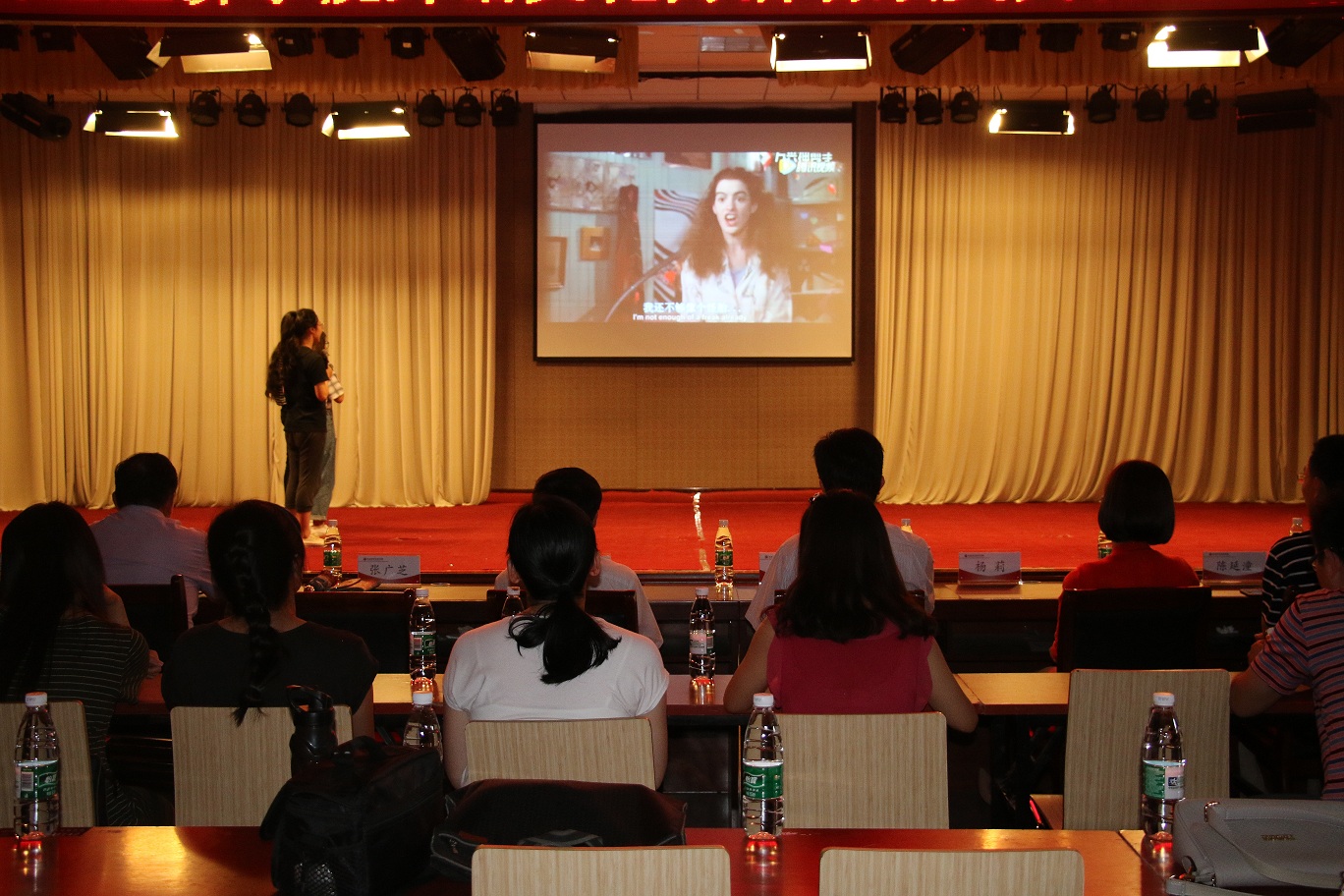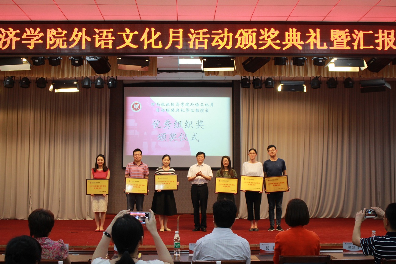 汇报演出在国际教育学院同学们带来的电影配音表演《天生一对》中拉开了帷幕,随后各项赛事的颁奖仪式与获奖选手的演出穿插进行。有经济贸易学院、工程管理学院选送的《公主日记》配音表演,物流与电商学院的选送《小王子》配音表演,制药工程学院选送的《疯狂动物城》配音表演,艺术学院选送的《冰雪奇缘》配音表演,还有荣获全国高等院校英语导游服务三等奖的外国语学院旅游英语专业学生王颖颖带来的英文导游讲解——紫禁城,为观众带来了一场英语技能和英语文化的盛宴,充分展现了新葡萄官网大学生的英语综合应用能力,赢得了嘉宾和观众的一致好评。副校长许圣道等嘉宾领导为荣获优秀组织奖、优秀指导教师奖及各项赛事一二三等奖的获奖集体和师生颁奖。