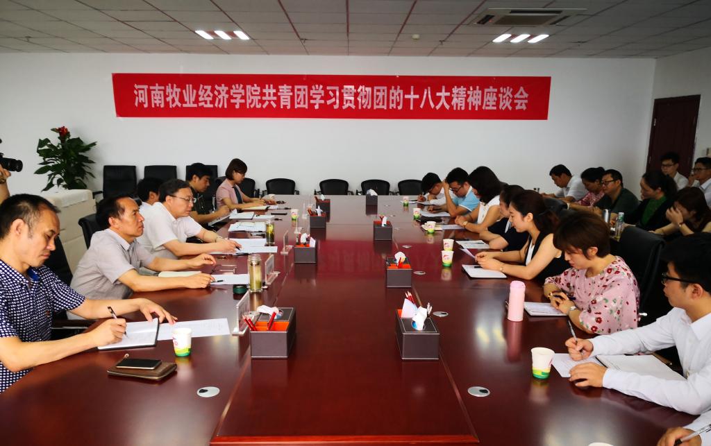 乘新时代东风,放飞青春梦想。为深入学习贯彻团十八大精神,7月6日上午,新葡萄官网在图书馆941会议室召开团学骨干学习贯彻团十八大精神座谈会,校党委书记穆瑞杰,副校长许圣道,相关部门负责同志,校团委全体成员,各学院团总支书记、团员代表40余人参加座谈会。