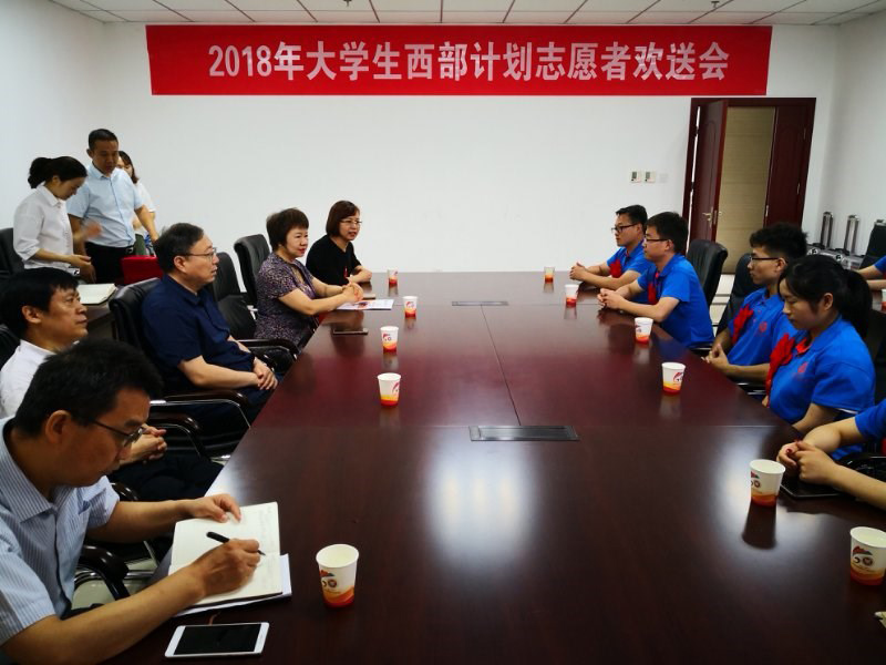 7月11日上午,新葡萄官网2018年大学生西部计划志愿者欢送会在龙子湖校区图书馆738会议室举行。校党委书记穆瑞杰,副校长许圣道,相关部门负责同志以及即将奔赴服务地的10名志愿者参加了此次欢送会,会议由校团委副书记杨莉主持。