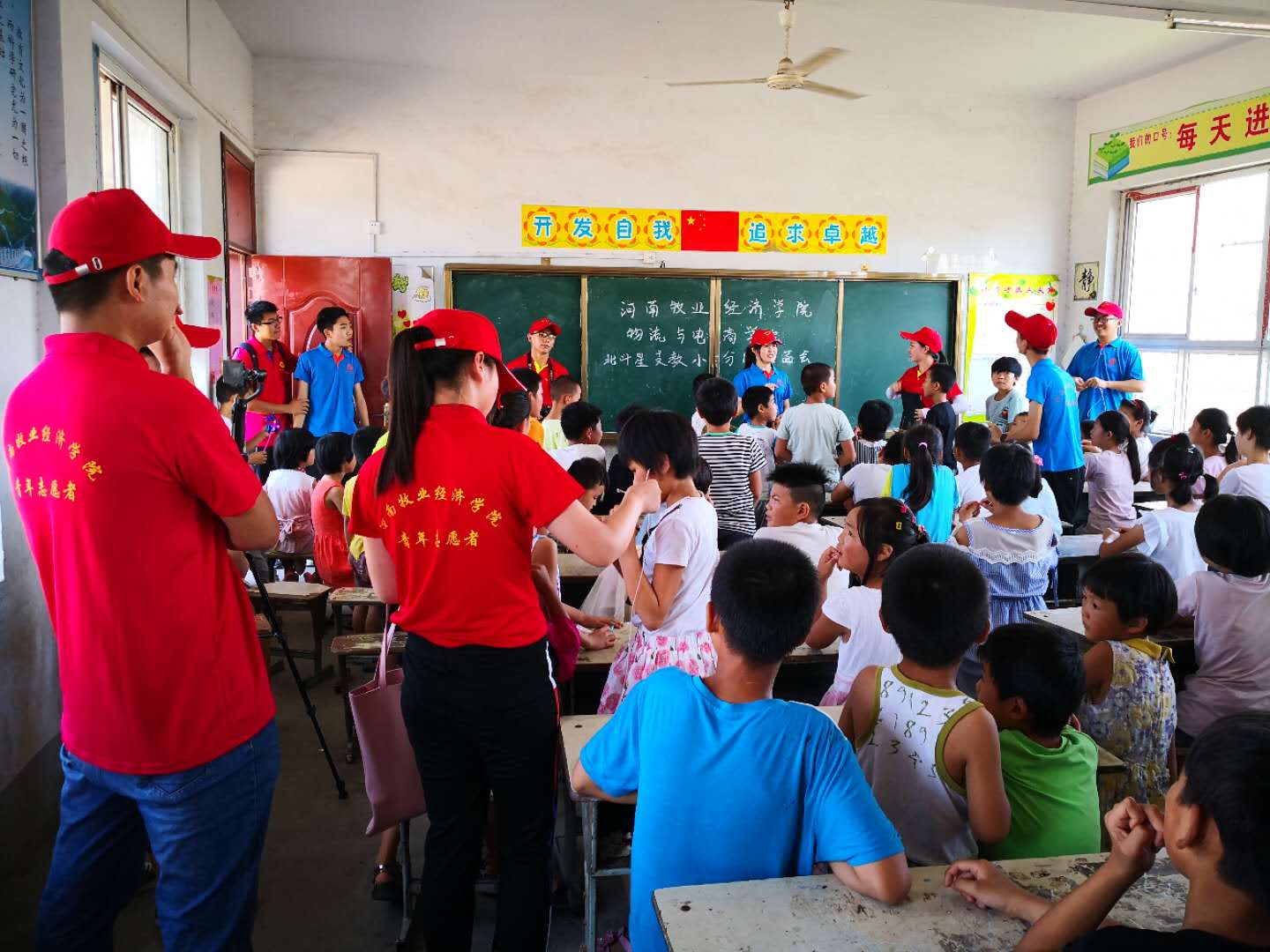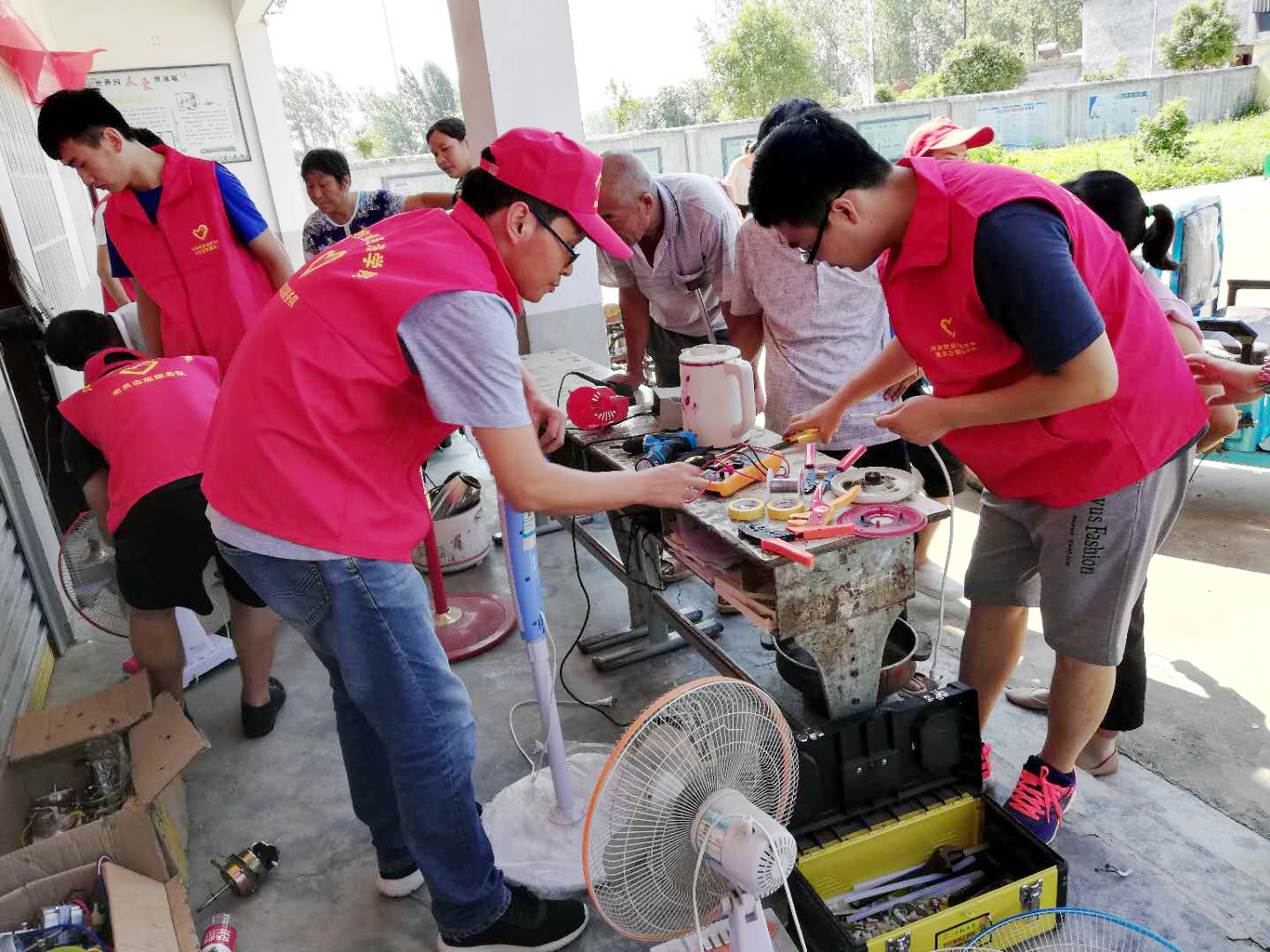 与此同时,学校志愿服务队在大马庄村小学安营扎寨,开展了紧张有序的志愿服务活动。电脑维修及网络安全培训志愿服务分队现场为当地村民开展网络安全教育,并深入村民家中维修电脑,赠送鼠标和网线等电脑器材。爱心相册志愿服务分队带着照相器材和设备,热心为村民开展现场照相志愿服务,为村民留下了一张张美好的回忆。医疗卫生志愿服务分队自带药品和医疗器材设备,在大马庄村小学教室设置了临时就诊点,热情为前来就诊的当地村民进行健康教育和血压血糖、心电图测量、针灸治疗等医疗卫生志愿服务,免费发放解暑降温药品小家电修理志愿服务分队自带零配件和维修设备,不顾高温酷暑,精心为村民修理电磁炉、电饭煲、电风扇、洗衣机、电冰箱等家用电器,直到最后一件电器修理完毕才收工。物流与电商学院社会实践志愿服务分队,也同期抵达为大马庄村小学开展为期一周的义务支教活动。