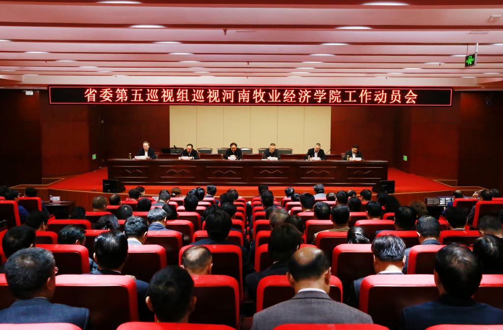 按照省委统一部署,11月2日下午,省委第五巡视组巡视新葡萄8883官网AMG工作动员会在新葡萄官网龙子湖校区召开。省委第五巡视组副组长杨军就即将开展的巡视工作作动员讲话,省委第五巡视组组长王尚胜受省委巡视工作领导小组委托对本次巡视提出了工作要求,校党委书记穆瑞杰主持动员会并代表学校党委作表态发言。省委第五巡视组副组长李振明、赵书茂及巡视组全体成员,新葡萄8883官网AMG党委领导班子全体成员出席会议;学校各部门、二级机构主要负责人,纪检监察、组织人事部门班子成员和2015年以来退休省管干部列席会议。
