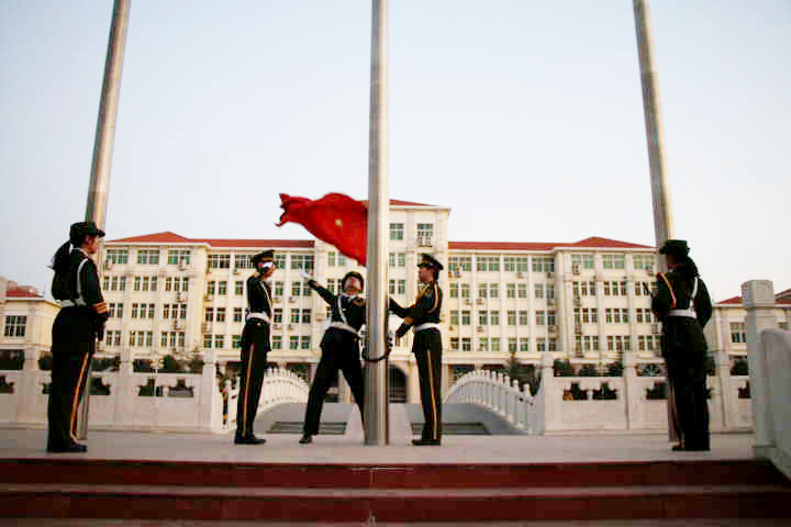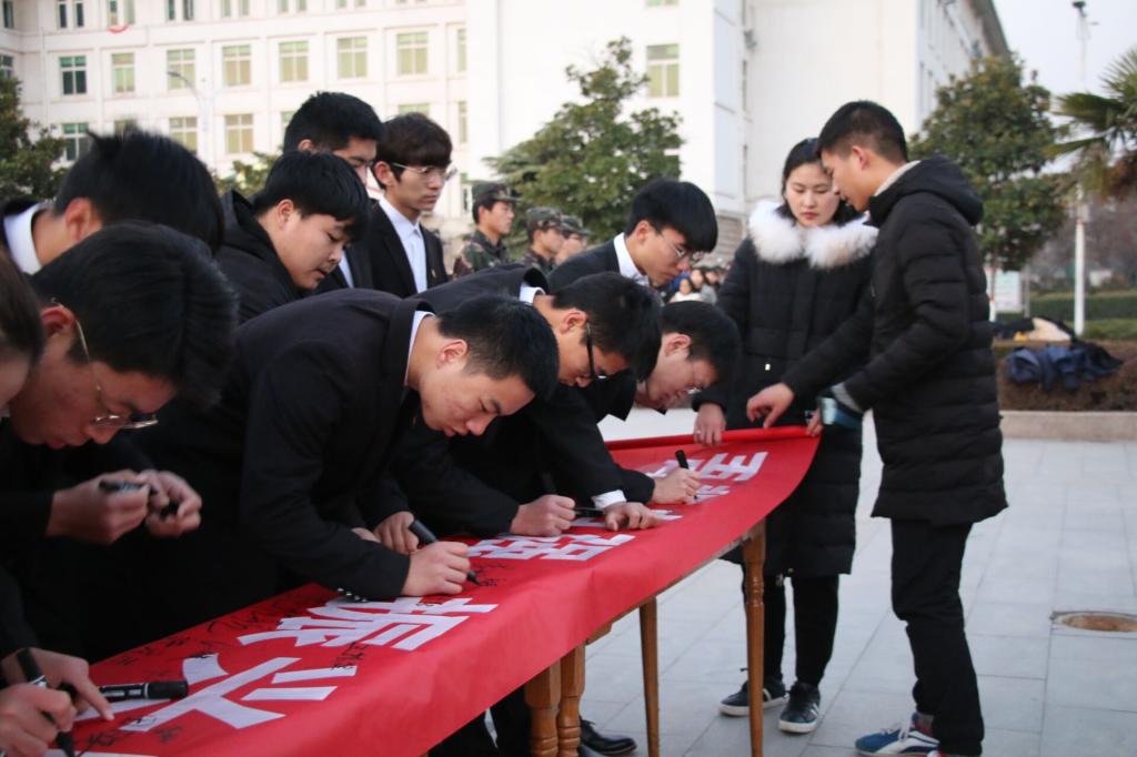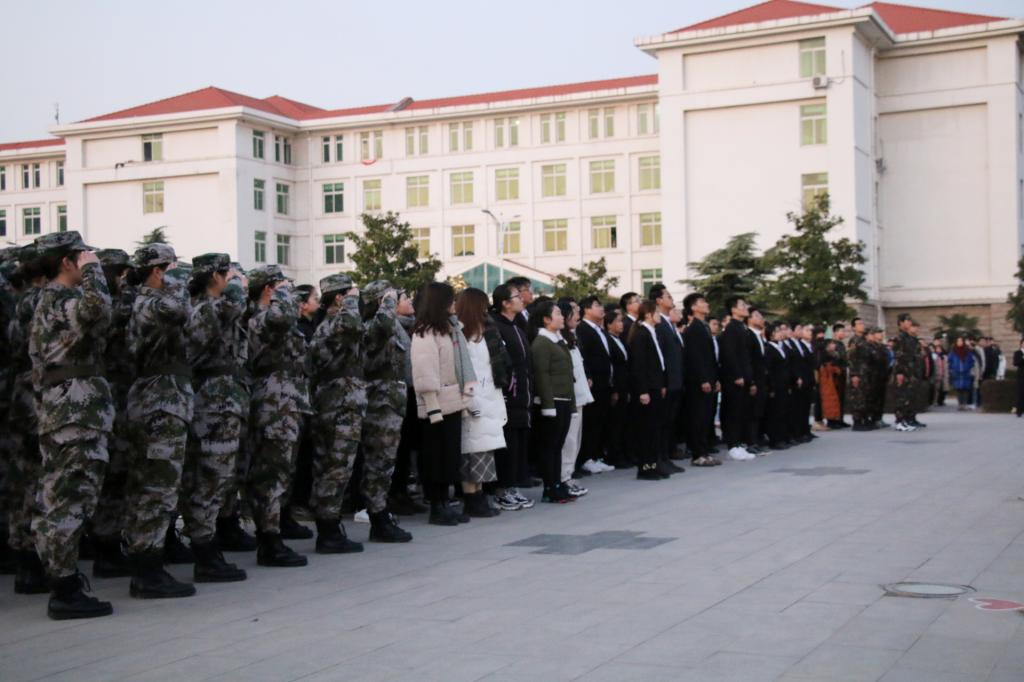 在嘹亮的《歌唱祖国》歌声中,着装严整的大学生国旗队齐步出场,他们步伐铿锵、目光坚毅、口号响亮,脚下走过的是短短的距离,心中刻下的却是不可磨灭的历史印迹。7时整,伴随着雄壮的国歌声,鲜艳的国旗缓缓升起,现场师生以饱含深情的目光注视着五星红旗冉冉升起,深切表达了对党与祖国的无限热爱。随后,现场师生向南京大屠杀的无辜死难者,向所有惨遭日本侵略者杀戮的死难同胞,向为中国人民抗日战争胜利献出生命的革命先烈和民族英雄默哀。升旗仪式结束后,穆瑞杰、罗士喜以及参加活动的师生代表分别在“铭记历史珍爱和平 吾辈自强 振兴中华”条幅上签名。