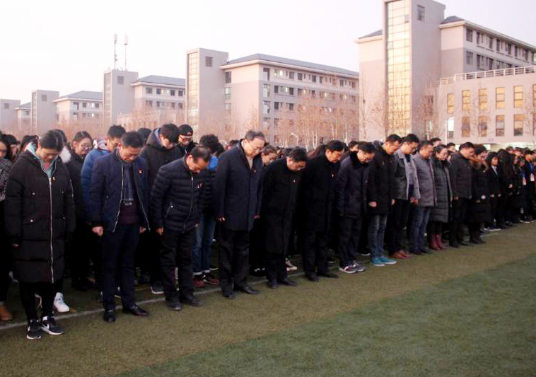 12月13日清晨,新葡萄官网在三校区同时组织开展纪念“南京大屠杀死难者国家公祭日”主题升旗仪式活动。校党委书记穆瑞杰、校长罗士喜,党政办、党委宣传部、校团委负责同志,各学院党总支书记、党总支副书记、团总支书记、辅导员老师,以及各学院学生代表、团学干部、校级学生组织成员共计五千余人分别聚集在各校区的国旗台前,参加了庄严肃穆的升旗仪式。