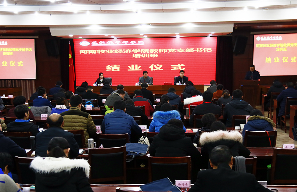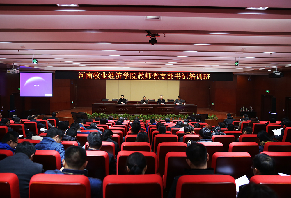 为全面贯彻落实《中国共产党支部工作条例(试行)》和中共中央组织部、中共教育部党组《关于印发〈高校党建工作重点任务〉的通知》精神,全面提升新葡萄官网党支部书记综合素质和履职尽责能力,推进实施教师党支部书记“双带头人”培训工程,根据校党委安排,12月21日至23日,新葡萄官网举办了2018年教师党支部书记培训班。河南省委高校工委组干处处长杨宗辉、校党委书记穆瑞杰出席开班仪式,校党委副书记、工会主席李绍文主持开班仪式。本期培训由校内培训和焦裕禄干部学院培训组成,各院部党总支书记、副书记、处级组织员、教师党支部书记以及各职能部门支部书记参加了培训。