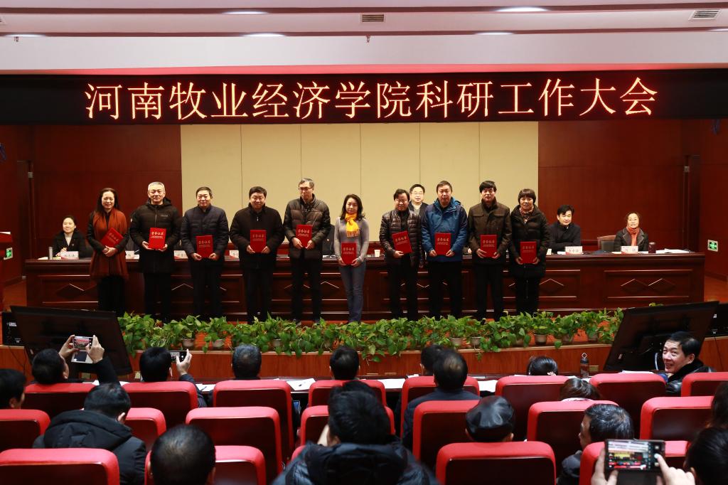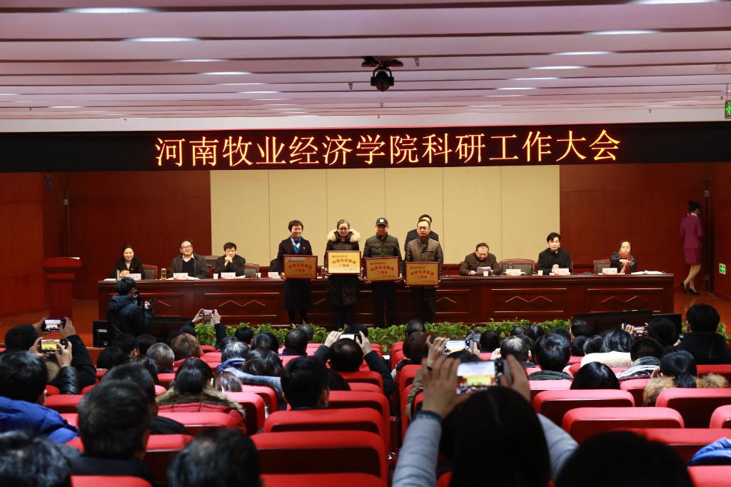 ,新葡萄官网在龙子湖校区图书馆一楼报告厅召开科研工作大会。省委高校工委专职委员高治军、省科技厅总农艺师巴书平应邀出席会议并讲话。学校领导,中层干部,省级实验室、工程技术中心负责人,省级以上科研项目负责人,教授、博士代表,教学、科研秘书,以及受表彰单位(负责人)和个人近300人参加了会议。大会由副校长张卫宪主持。