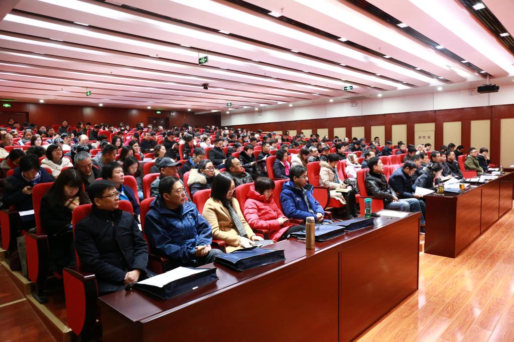 校长罗士喜作大会工作报告。他回顾总结了过去三年科研工作取得的突出成绩,点明指出了存在的问题,分析研判了形势和机遇,进而明确了今后三年科研工作发展的“五大目标”,即加快高层次人才培养步伐,培育一批科研领军人物;有效整合人力物力资源,大力加强科研创新团队和学术梯队建设;加强前期培育,促进高水平科技创新平台建设;激发科技创新活力,在重大项目申报及成果产出上实现重大突破;充分调动科技服务积极性,不断提高科技成果转化率。为确保目标实现,他强调大力实施“六大工程”:一是“学科引领工程”,强化科研与学科建设、社会服务三位一体的意识;二是“机制创新工程”,以创新质量和水平为导向加快改革科研评价机制;三是“人才强校工程”,快速提升科研队伍整体水平;四是“科教融合工程”,以高水平科研支撑高质量人才培养;五是“协同创新工程”,切实提升科研服务能力;六是“强基固本工程”,全面提升科研保障水平。