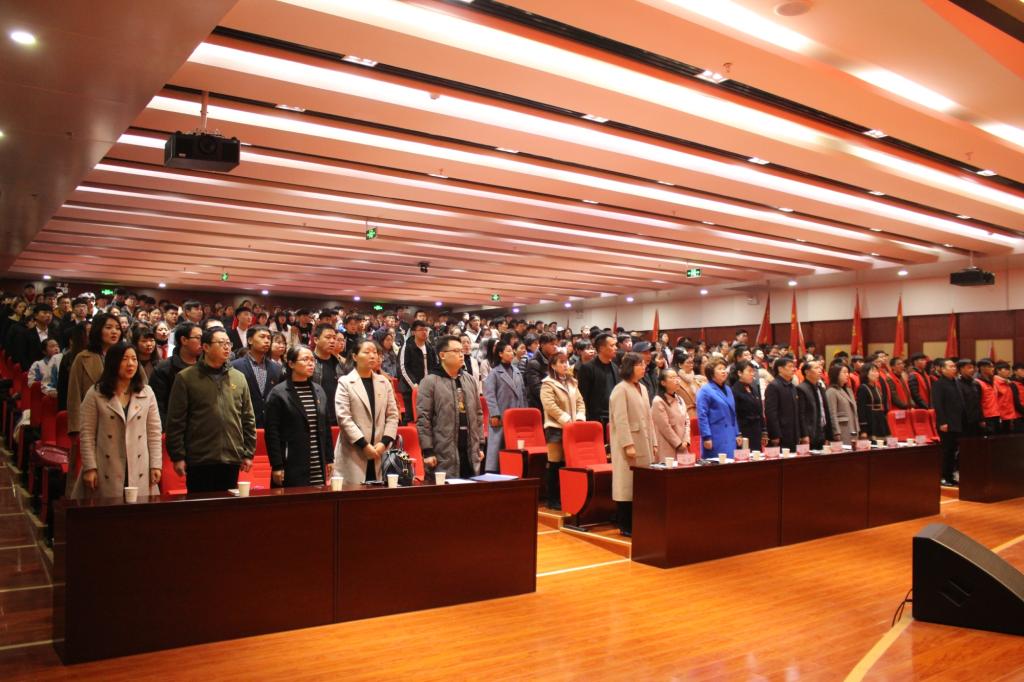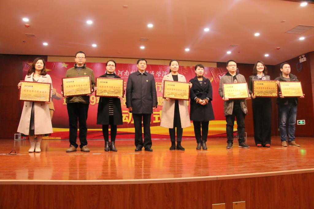 在第56个学雷锋纪念日和第20个中国青年志愿者服务日到来之际,为传承和弘扬雷锋精神,引导全校团员青年培育和践行社会主义核心价值观,积极投身志愿服务事业,推动新葡萄官网志愿者队伍不断壮大,3月3日上午,新葡萄官网2018年度青年志愿者行动表彰大会暨2019年学雷锋志愿服务月活动启动仪式在龙子湖校区图书馆一楼报告厅举行。副校长许圣道,团省委社会联络部副部长王慧,郑东新区团委书记白静,金水区团委书记王倩,惠济区团委书记张贝贝,原阳县武庄小学校长宋攀立,以及学校宣传部、学工部、团委等相关部门负责人出席活动,各学院团总支书记、辅导员老师和500余名青年志愿者参加了表彰大会和启动仪式。