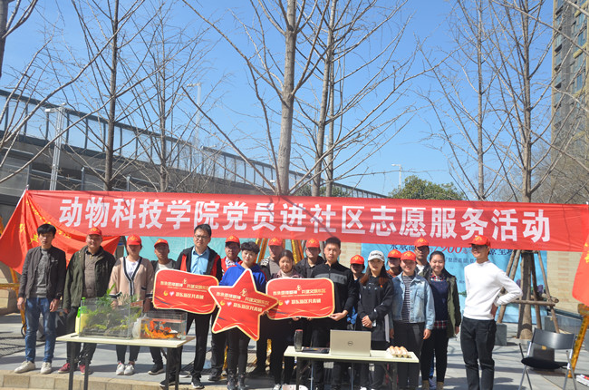 动物科技学院来到永威五月花城社区开展了党员进社区志愿服务活动。水产养殖协会志愿者向社区居民讲解了观赏鱼养殖方法、鱼病防治技术、水族箱造景技巧及日常护理方法,帮观赏鱼爱好者们解决了日常养鱼与水族箱护理经常遇到的难题。畜禽科技站的志愿者们为大家介绍了鸡蛋品质的辨别、肉品质辨别等专业知识,让居民们能更好的分辨健康优良的动物食品。