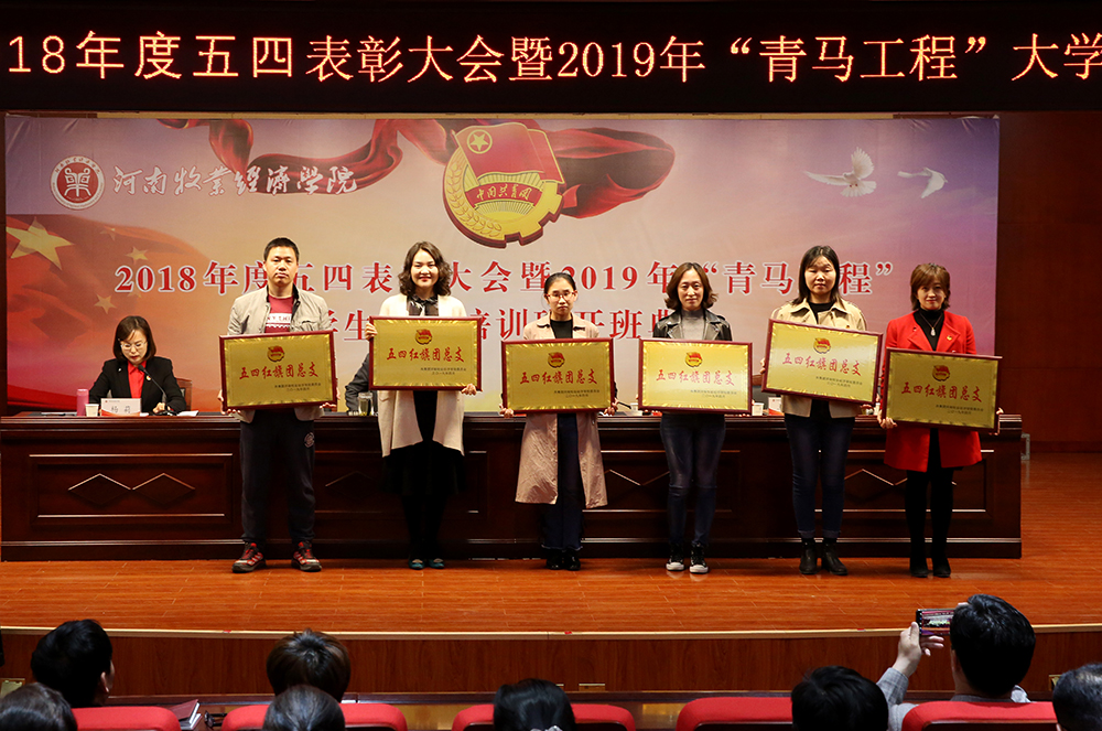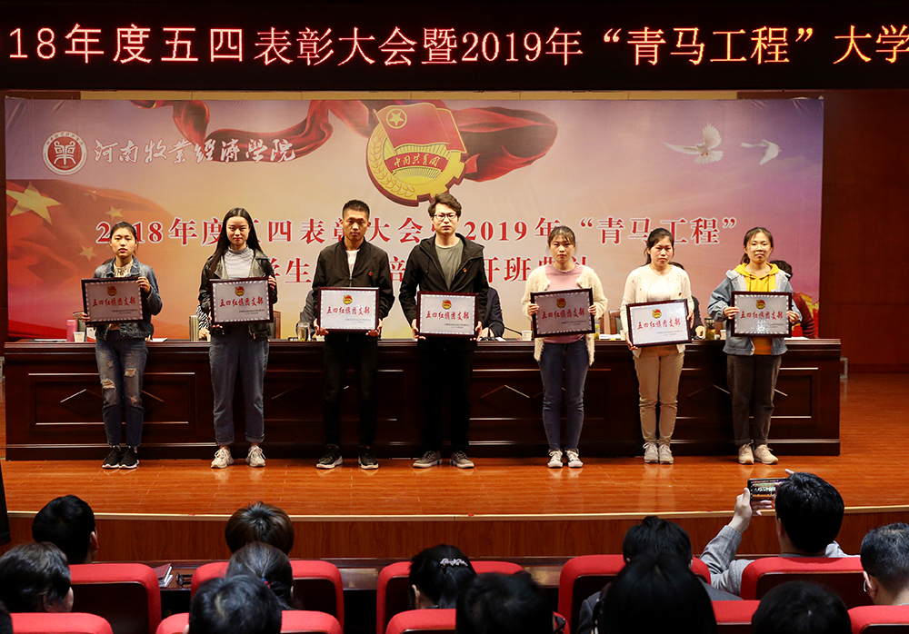 在五四运动100周年即将到来之际,为传承和发扬五四精神,进一步引导广大团员青年勇担新时代重任,4月26日下午,新葡萄官网2018年度五四表彰大会暨2019年“青马工程”大学生骨干培训班开班典礼在龙子湖校区图书馆一楼报告厅隆重举行,并以视频会议的形式在英才校区学术报告厅同步召开。校党委书记穆瑞杰,副校长杨志清,党委组织部部长、党校副校长戴天增,党委宣传部部长王凌彬,党委学工部部长、学生处处长张广芝,马克思主义学院党总支书记邵红梅,各学院党总支副书记、团总支书记和辅导员老师,受表彰的先进集体、个人代表以及2019年“青马工程”大学生骨干培训班全体学员等近800名师生代表参加了大会。大会由校团委副书记杨莉主持。