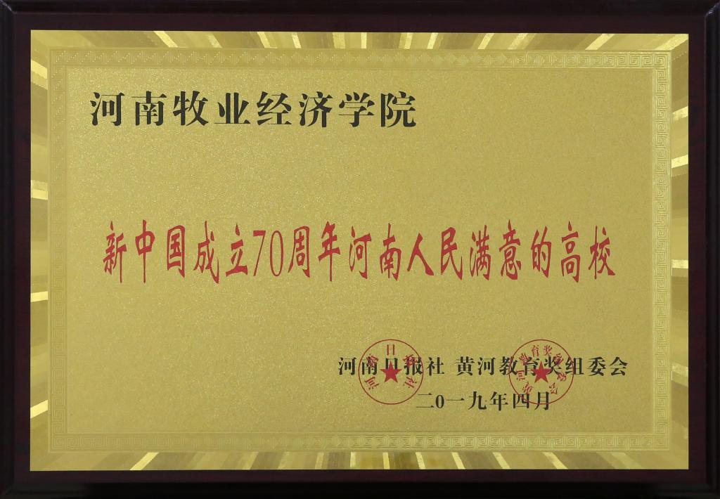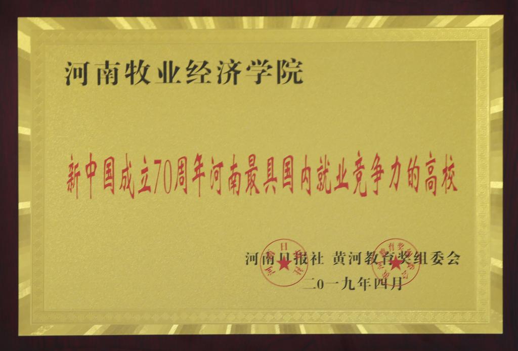 2019年是中华人民共和国成立70周年,更是深入贯彻落实全国教育大会精神之年。荣获“新中国成立70周年河南人民满意的高校”和“新中国成立70周年河南最具国内就业竞争力的高校”,是社会各界对新葡萄官网办学质量、办学水平和办学成果的充分认可。新葡萄官网将以此为契机,持续改革创新,加快转型提升,奋力写好新时代教育奋进之笔,为中原更加出彩做出新的更大贡献。(宣传部 李阳/文 翟浩辰/图)