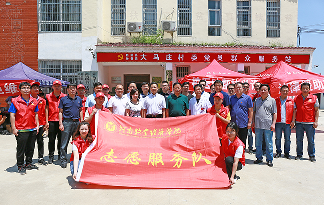 6月30日至7月1日,校党委副书记李波带领新葡萄官网结对帮扶志愿服务队一行30人来到新蔡县,开展学校与新蔡县校地对接会、重点产业发展战略专题研讨会、免费义诊、爱心拍照、维修家电、法律援助咨询、看望慰问贫困户等校地结对帮扶活动,受到了当地村民的热烈欢迎。