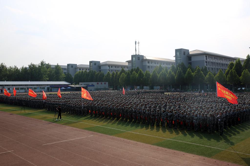 大会在庄严的升国旗仪式中拉开帷幕。会上,全体新生将“1949-2019”等祝福字样通过队形变化呈现出来。参加分列式表演的各个方阵在铿锵的军乐声中依次通过主席台,同学们迈着整齐的步伐,高喊响亮的口号,整齐划一的动作和英姿飒爽的风貌,赢得了学校领导、部队军官和现场观众的阵阵掌声。分列式结束后,学生代表进行了刺杀操、匕首操表演,承训部队教官进行了军体拳、战术展示表演。
