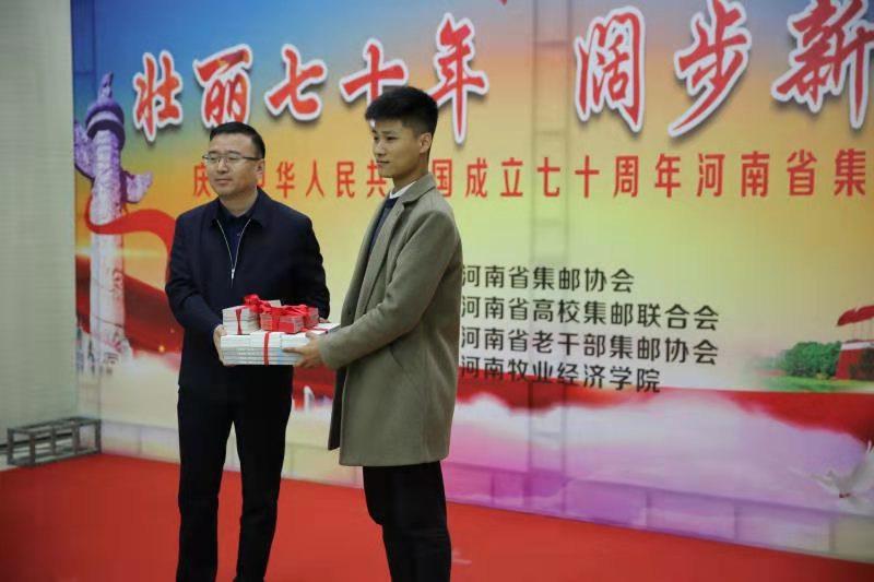 校党委副书记、校长罗士喜在开幕仪式上对各位来宾的到来表示热烈的欢迎。他介绍了新葡萄官网与祖国共奋进的创业史、发展史,高度评价了集邮巡展的政治意义和文化意义。葛纪谦会长致辞,勉励新葡萄官网青年在壮丽新时代中积极进取,阔步向前。随后杨汉振会长、中国邮政集团公司河南省分公司集邮与文化传媒部总经理胡庆魁分别在仪式上向新葡萄官网师生代表赠送了系列红色邮品,新葡萄官网党委书记、河南省高校集邮联合会常务副会长穆瑞杰宣布集邮巡展开幕。