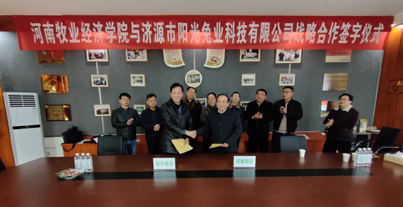 张卫宪代表学校与河南阳光兔业科技有限公司签署了校企合作战略框架协议。张卫宪和段天奎共同为“新葡萄8883官网AMG教学实践基地”、“新葡萄8883官网AMG博士工作站”揭牌。
