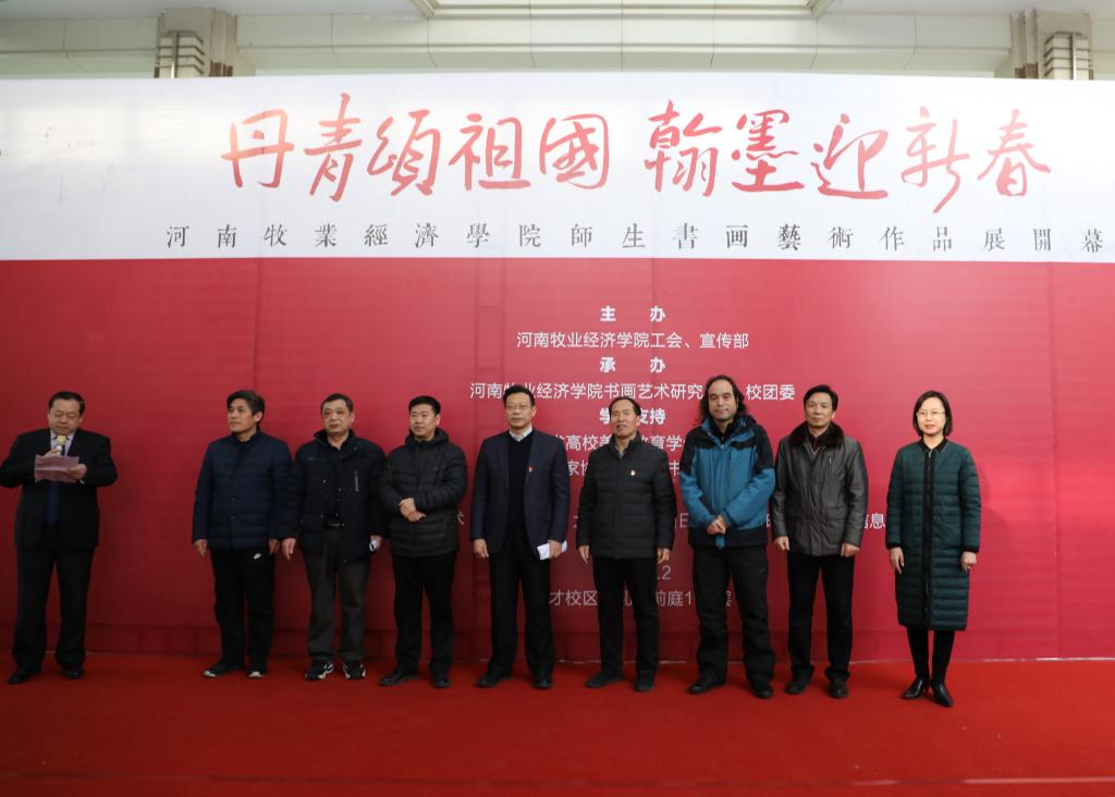 丹青吐秀碧绿前,墨彩飘香咫尺间。1月2日,由校工会、党委宣传部、校团委、书画艺术研究中心、英才校区综合服务办公室共同举办的“丹青颂祖国 翰墨迎新春——新葡萄8883官网AMG师生书画艺术作品展”在英才校区大礼堂一楼大厅开幕。校党委副书记李波、副校长程慎出席开幕式,党委宣传部长王凌彬、工会副主席刘官生、英才校区综合服务办公室主任王永全、校团委书记杨莉、学术机构负责人王学俊及各分工会师生代表参加了开幕式。开幕式由程慎主持。