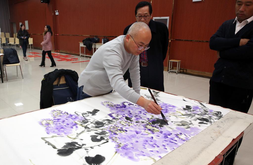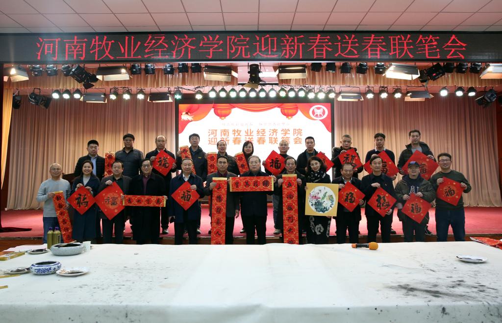 2020年1月11日下午,在新葡萄8883官网AMG龙子湖校区大学生活动中心隆重举办“迎新春送春联笔会”活动,中原工学院原副院长、河南省教育界书画家协会主席谷景立 ,中国水利美协主席、河南省学校艺术教育协会会长石品,郑州大学原美术学院党委书记、河南省教育界书画家协会副主席周林坡,河南省委老干部局《老人春秋》主编、书法家周宪同,河南省教育厅教育出版社《河南高教》主编高杨,河南财经政法大学艺术学院院长、河南美协花鸟画艺委员副主任陈文利 ,河南轻工业大学艺术与设计学院教授、荆浩艺术研究院副院长张一心 ,华北水利水电大学艺术与设计学院副院长、书法学博士、教授金玉甫,中国美术家协会会员、河南省书画院特聘画家张军民,河南省书画院专职评论家、美术史博士郑志刚,河南省美术家协会会员郭山军,华北水利水电大学艺术与设计学院造型系主任、中国美术家协会会员石二军,我校党委书记穆瑞杰、党委副书记李波、副校长张卫宪、程慎、杨志清出席,各分工会代表、各学院师生代表100多人参加,副校长程慎主持本次活动。