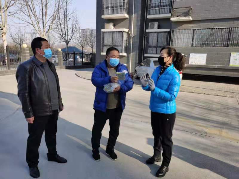 体育教学部副主任高丽为一线物业人员捐赠N95口罩。
