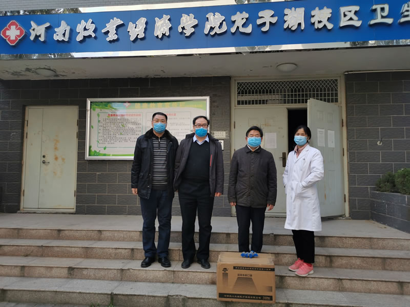 3月13日,校企合作单位河南田中禾农牧有限公司董事长穆建平委托社会服务办公室,捐赠新葡萄官网3000支体温计,用于开学后学生防疫工作。校长罗士喜、副校长张伟、社会服务办公室主任胡迎利等出席捐赠仪式。
