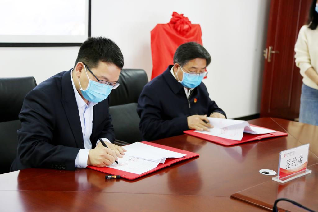 仪式上,罗士喜、冯武分别代表学校和黄河科技集团创新有限公司签订合作协议;刁玉华、冯武、穆瑞杰、罗士喜共同为“鲲鹏产业学院”揭牌。