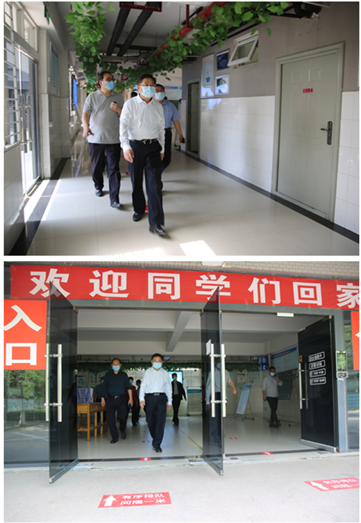5月17日上午,校长罗士喜、副校长张伟、杨宝进等带领学生返校复学相关工作人员检查督导学生返校复学准备工作情况。党办、校办、宣传部、后勤处、学工部等部门同志陪同检查督导。