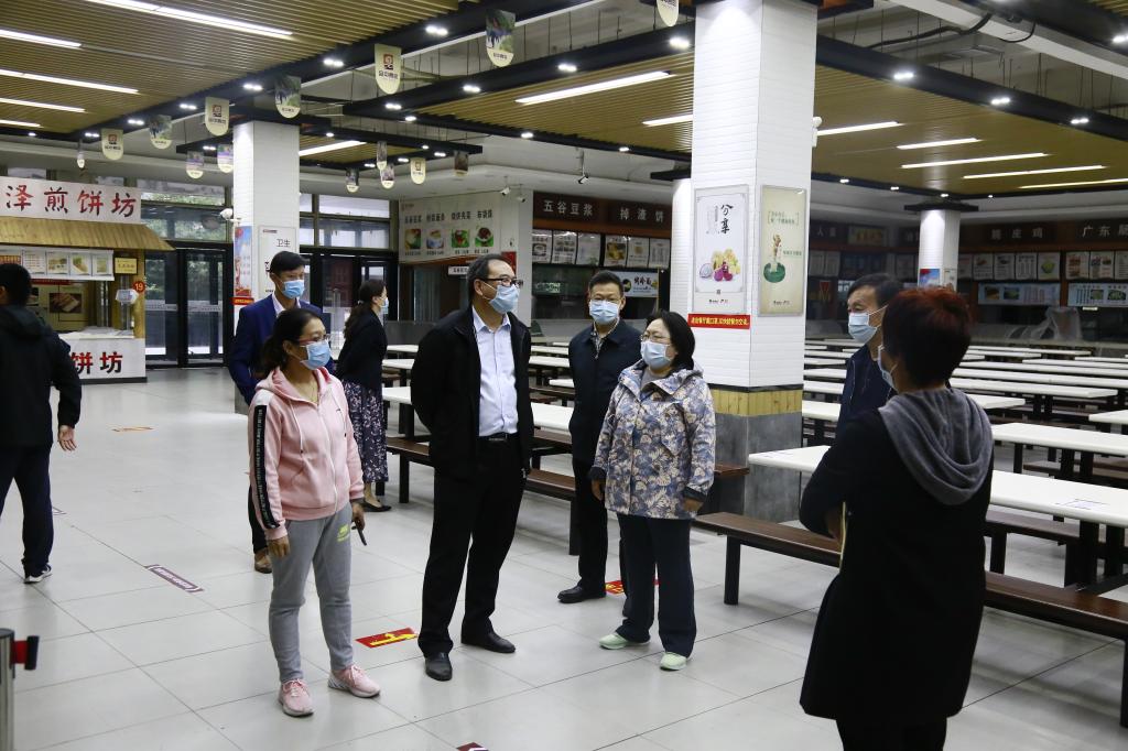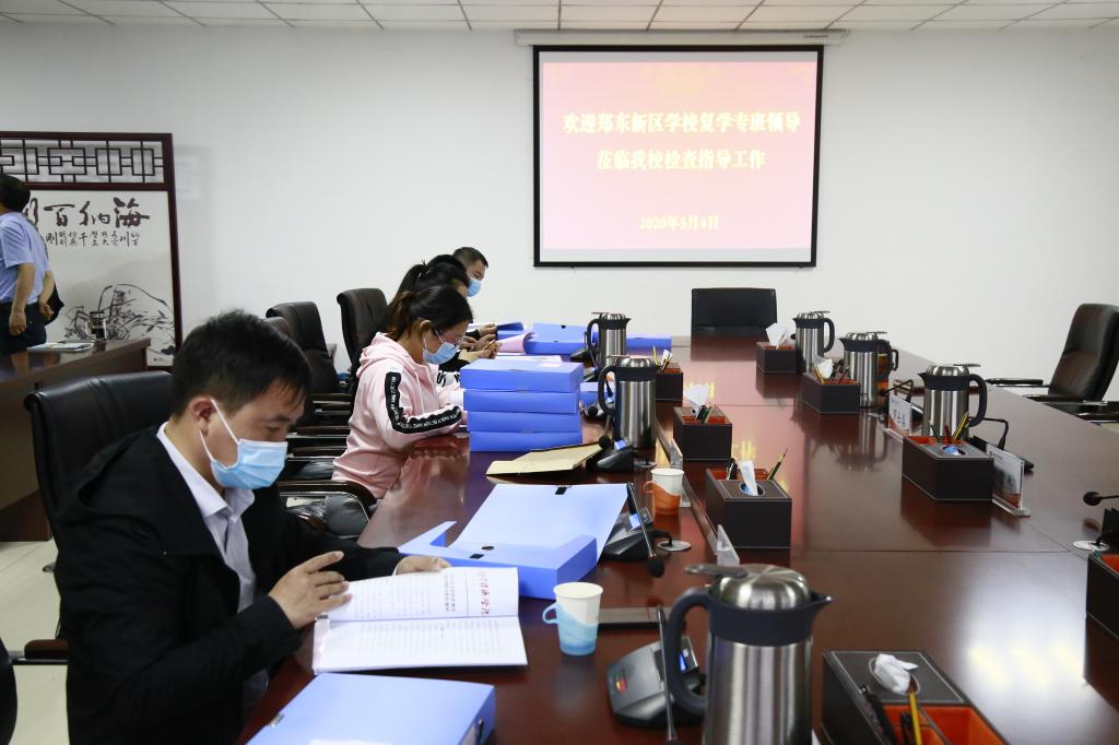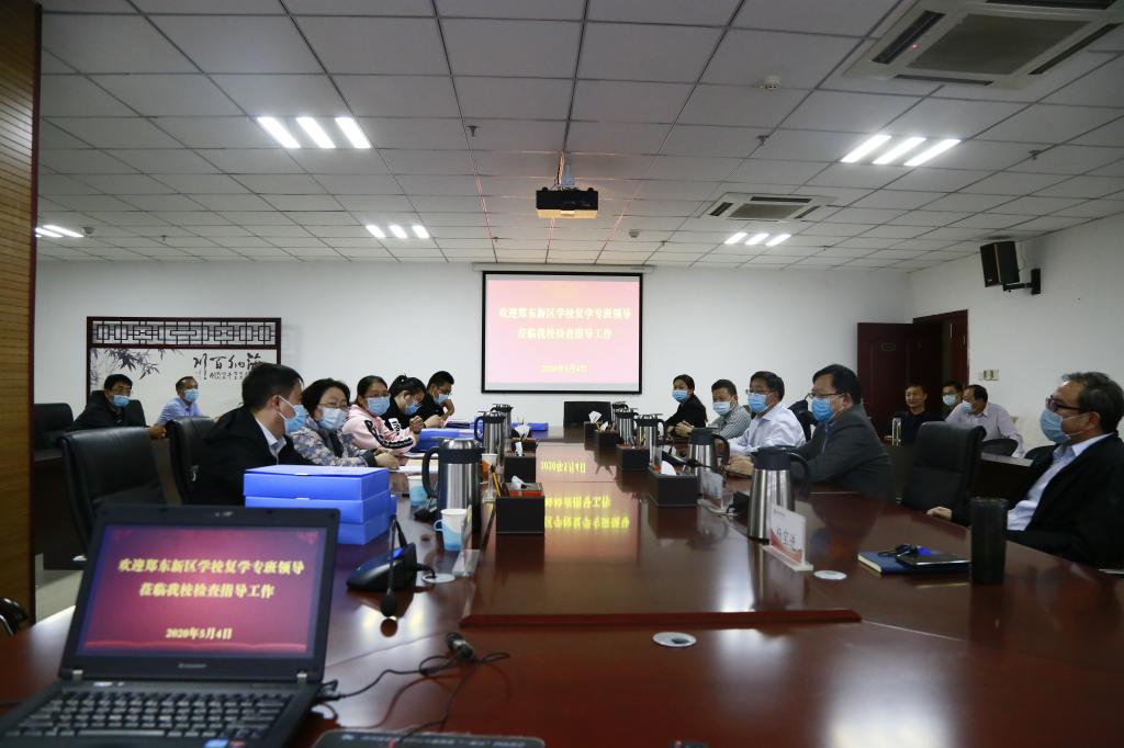 5月4日下午,由郑东新区教文体局麻玖玲一行6人组成的“五员专班”,到新葡萄官网龙子湖校区督查返校复学准备工作,校长罗士喜,校党委副书记李俊杰、李波,副校长张伟、杨宝进和学校防控办各工作组负责同志陪同检查。