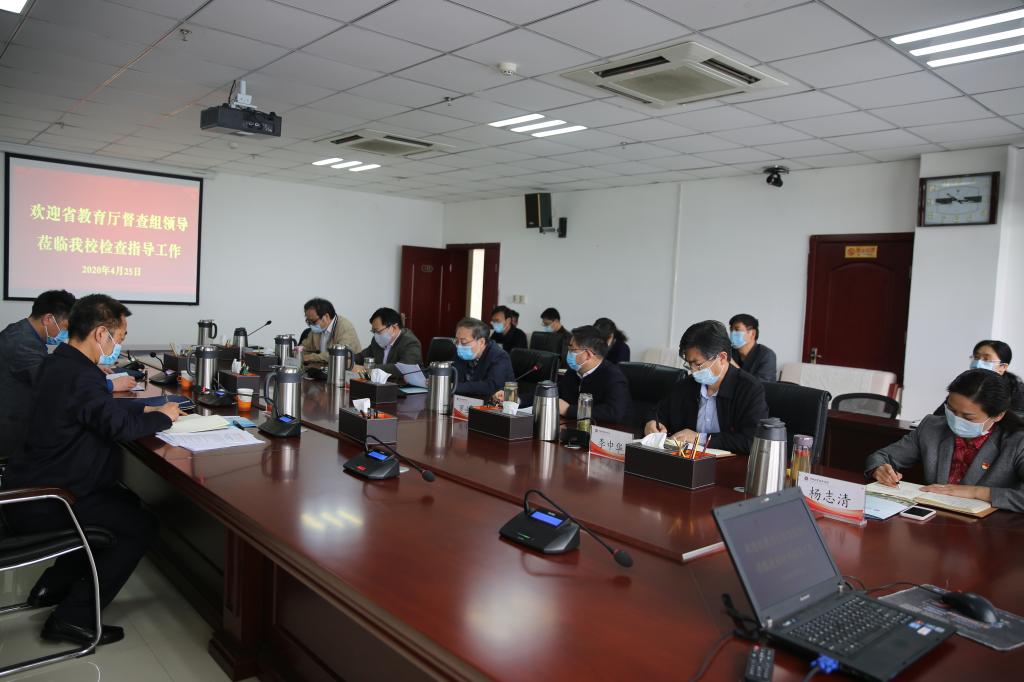 4月25日上午,省教育厅高校复学条件实地督查第二督查组组长、省教育厅组干处处长冯轩友一行2人到新葡萄官网检查指导返校复学准备工作。校领导穆瑞杰、罗士喜、李俊杰、李中华、张伟、杨志清、杨宝进及相关部门负责同志参加疫情防控汇报会。汇报会由校党委书记穆瑞杰主持。