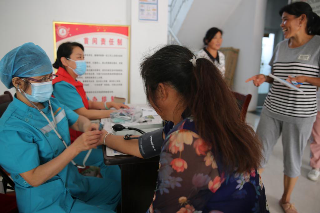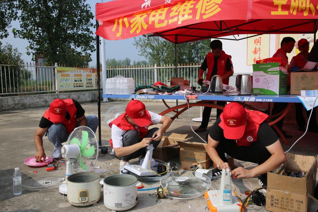 与此同时,在大马庄村党群活动中心,学校志愿服务队正在开展紧张有序的志愿服务活动。信息化办公室主任刘建朋带领的电脑维修及网络安全培训志愿服务分队,现场为当地村民开展网络安全教育,并进行相关维修。能源与智能工程学院院长隋继学带领的空调、冰箱维修服务分队,向群众宣讲空调、冰箱等家电科学使用常识,并进行维修、充氟。信息工程学院副书记蔡中民带领的小家电修理志愿服务分队,头顶烈日,精心为村民修理电磁炉、电饭煲、电风扇、洗衣机、电冰箱等家用电器。校医院副院长温晓燕带领的义诊帮扶志愿服务分队,在村委会室设置了临时就诊点,热情为前来就诊的当地村民进行血压、心电图测量、针灸治疗等医疗卫生志愿服务,免费发放解暑降温药品,宣讲新冠疫情防控知识。文法学院杨志民等老师为当地干部群众进行民法典讲座,提供法律咨询。