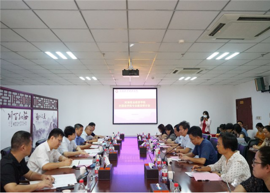 8月31日,外国语学院在龙子湖图书馆841会议室召开专业建设研讨会,省涉外翻译与语言服务专家指导委员会主任、中国翻译协会对外话语体系研究委员会副主任、省委外办原一级巡视员杨玮斌,中原工学院外国语学院院长郭万群教授、华北水利水电大学社科处处长魏新强教授、河南农业大学外国语学院院长张俊杰教授,郑州国际会展中心有限公司党委委员、董事、副总经理揭开宇、河南省国际贸易网商协会常务秘书长王毅、河南伊赛尔电子商务有限公司总经理申伟栋等校外专家应邀参会。新葡萄官网副校长吴中教授出席会议,外国语学院班子成员及商务英语专业教师参加会议。研讨会由外国语学院院长陈延潼主持。
