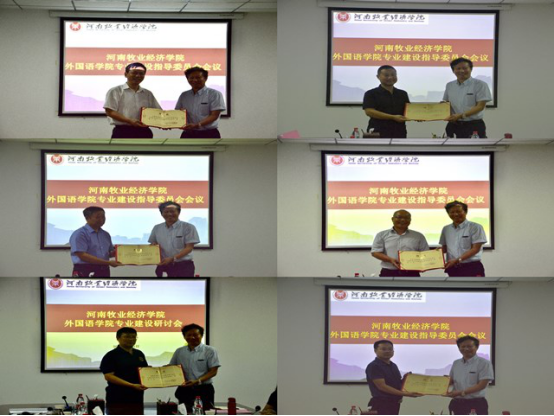 研讨会上,吴中向七位校外专家颁发了外国语学院专业建设指导委员会委员聘书。(田春霞/文 杨雅瑶 李特/图)