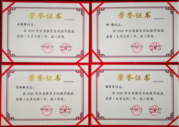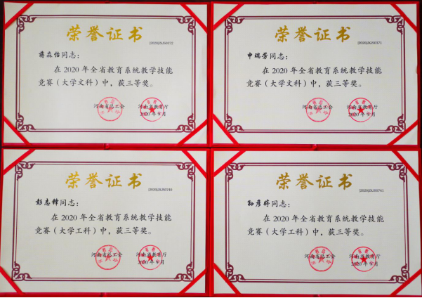 日前,河南省总工会、河南省教育厅联合下发《关于表彰2020年全省教学技能竞赛获奖单位和个人的决定》,新葡萄官网教师在2020年全省教学技能竞赛中荣获5个一等奖、4个二等奖、4个三等奖的优异成绩;学校被授予“2020年全省教学技能竞赛优秀组织单位”荣誉称号,是全省获此殊荣的八所高校之一。