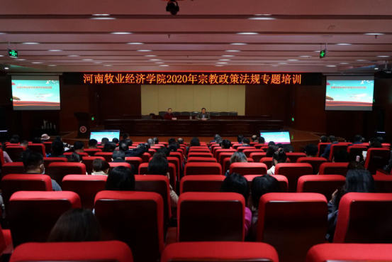 10月22日下午,学校在龙子湖校区图书馆一楼报告厅举办宗教政策法规专题培训,邀请河南省社会主义学院韩松洋博士作专题辅导报告。全校各基层党委、党总支书记、副书记,各学院团委书记,马克思主义学院全体教师,全校辅导员参加培训。培训会由校党委副书记李俊杰主持。