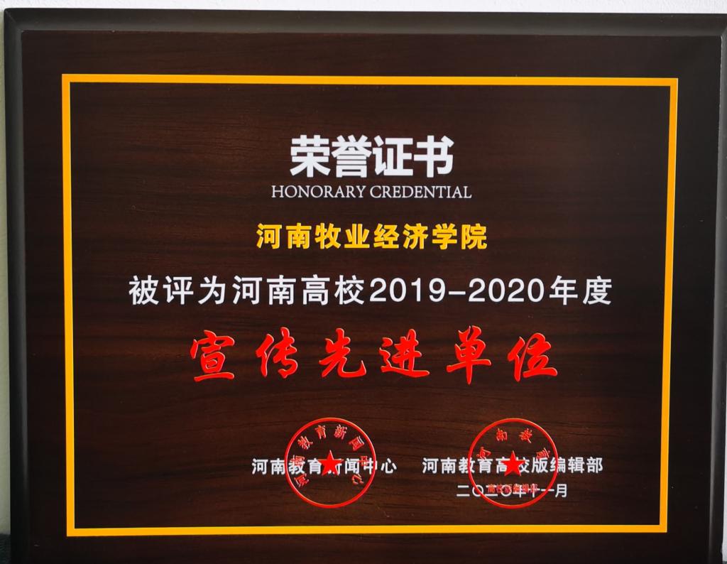 近期,河南省教育新闻中心公布河南高校2019—2020年度宣传先进单位、优秀通讯员、优秀新闻作品评选结果。新葡萄官网荣获“河南高校2019—2020年度宣传先进单位”。校党委宣传部常书辉老师被评选为“河南高校2019—2020年度优秀通讯员”,翟浩辰老师的新闻作品《同学,我永远欢迎你常回来看看》荣获一等奖,李阳老师的新闻作品《点亮你记忆里的牧经颜色》荣获三等奖。