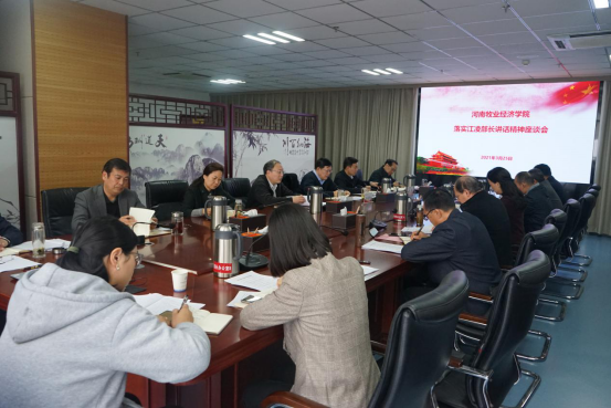 3月25日,学校在龙子湖校区图书馆841会议室召开落实江凌部长讲话精神座谈会,校党委书记穆瑞杰,党委副书记李俊杰,副校长杨志清、姚毅出席座谈会,校党委办公室、党委组织部、党委宣传部、院长办公室、学校疫情防控办公室、发展规划处、教务处、人事处、党委学生工作部、财务处、纪律检查委员会、校团委、教学质量监控与评估办公室,动物科技学院、金融与会计学院等二级学院书记、院长代表参加座谈会。座谈会由李俊杰主持。