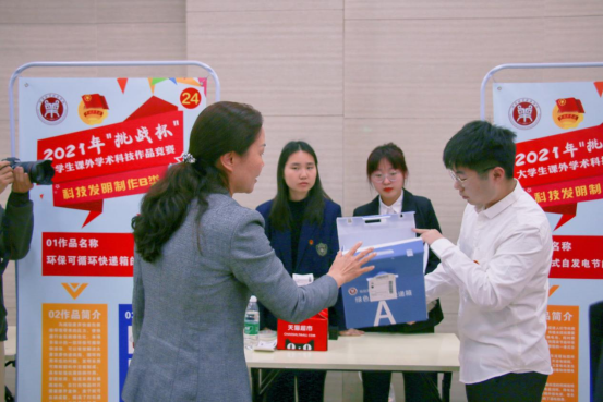 本届“挑战杯”大学生课外学术科技作品竞赛包括自然科学类学术论文、哲学社会科学类论文、社会调查报告和学术论文、科技发明制作等内容。“挑战杯”大学生课外学术科技作品竞赛的成功举办,进一步营造了新葡萄官网崇尚科学、追求真知、勤奋学习、锐意创新、迎接挑战的学术氛围,培养了广大学生的创新意识和科学精神,提升了大学生的实践能力、科研能力和创业能力,为把新葡萄官网建成全国知名全省一流特色鲜明的高水平应用型大学贡献力量。(李勤/文 图)