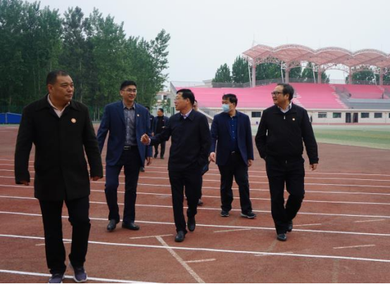 4月25日,河南省教育厅总督学李金川带领河南省教育厅体卫艺处负责同志和河南省中学生运动会、大学生运动会技术代表、赛事总管组成的专家组一行5人到校检查指导2021年河南省第二十八届中学生田径运动会和河南省大学生“华光”体育活动第二十一届田径运动会(以下简称运动会)筹备工作。副校长张伟带领新葡萄官网运动会筹备工作领导小组(以下简称筹备组)办公室和各筹备工作小组相关负责人陪同检查。