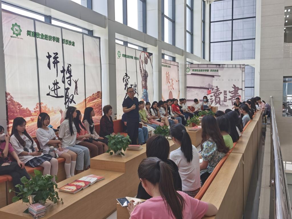 颜务林教授结合自己的求学经历、工作经历、讲学经历分享自己的阅读习惯和阅读收获,从阅读什么、改变什么、阅读的重要性、阅读习惯养成、图书馆资源利用等5个方面与同学们分享阅读的重要性。颜务林表示,图书馆是校园信息化的中心,强调数字阅读是时代的必然,图书馆是储藏和传播智慧、交流思想、酝酿创造力的地方,是具有强大阅读环境的地方。颜务林谈古论今、旁征博引,言语间散发风趣幽默,活动现场氛围欢快而热烈。