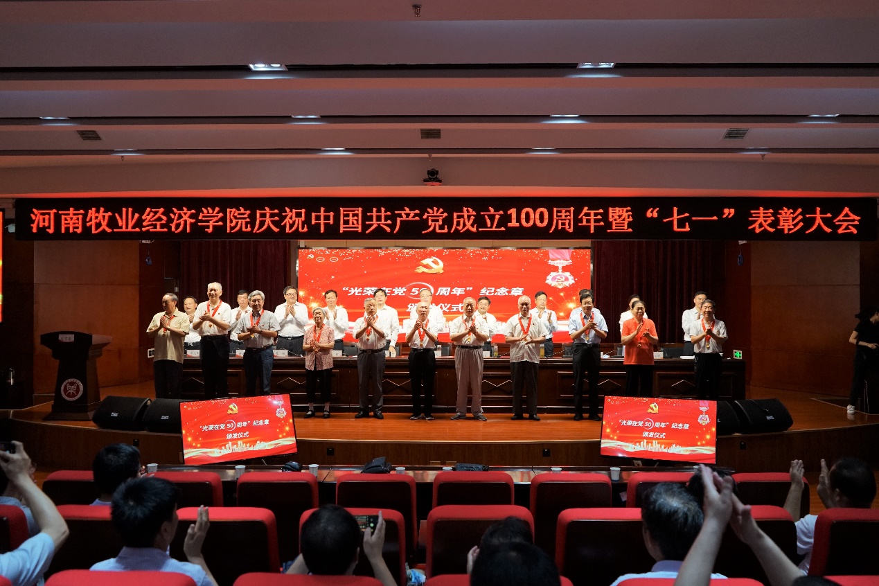校党委书记穆瑞杰充分肯定了学校各基层党组织、全体党员为学校事业作出的积极贡献,并代表学校党委向广大党员表示亲切问候,对忠诚于党的事业、兢兢业业为党奉献的光荣在党50年的老党员表示崇高敬意。