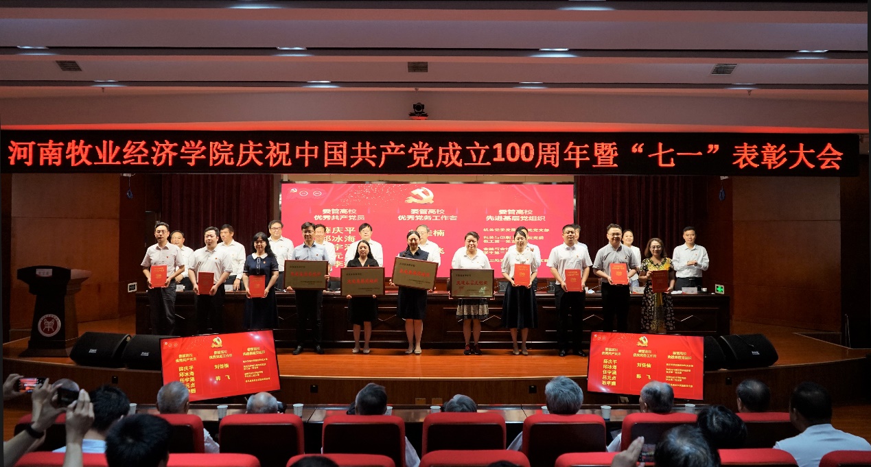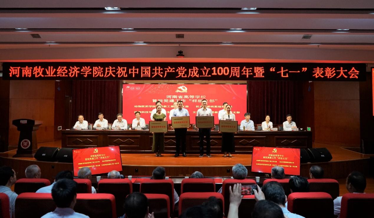 校党委副书记李俊杰宣读了《中共河南省委高校工委关于表彰委管高校优秀共产党员、优秀党务工作者和先进基层党组织的决定》《中共河南省委高校工委关于公布首批全省高校省级样板党支部评审结果的通知》《中共新葡萄8883官网AMG委员会关于表彰学校优秀共产党员、优秀党务工作者和先进基层党组织的决定》和《关于公布首批党建工作“双创”验收和第二批党建工作“双创”评审结果的通知》等文件。