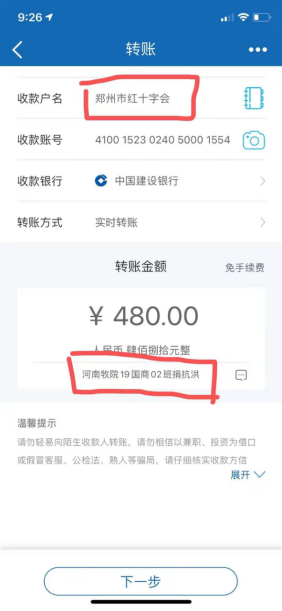 工商管理学院2019级国际商务02班全体同学自愿为郑州市红十字会捐赠480余元。学生纷纷表示:“自紧急通知被扩散以来,山西,武汉,济南各地的消防战士奔赴郑州共同增援河南,让我们真正见识到了感人的中国力量,暴雨凶猛,但敌不过众志成城。作为河南人,希望能为这次灾难贡献一份自己的力量。”