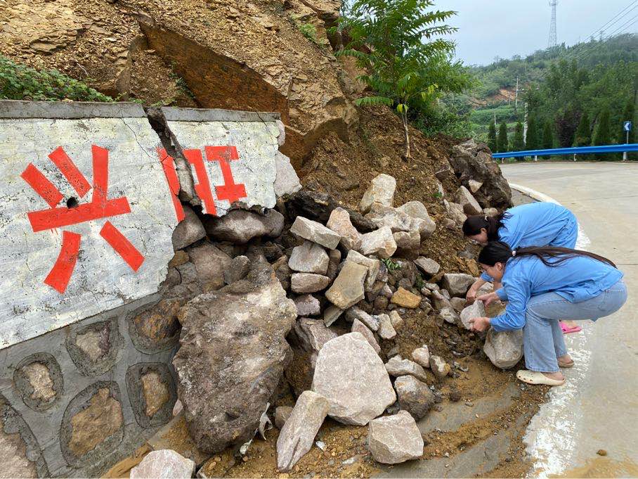 动物科技学院家住济源市承留镇孤树村的李杨、姬新茹、卢莹莹、展小霞四名同学不顾个人安危,清理雨后山上滚落碎石,为村民疏通下山之路。