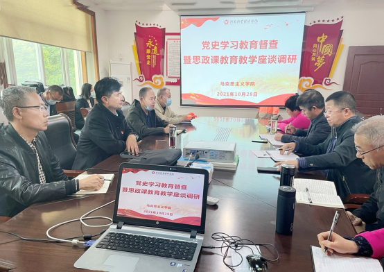 马克思主义学院党总支书记王本聚,院长白翔,副院长郭霞就马克思主义学院党史学习教育开展情况和思政课教育教学改革等工作作了汇报。与会教师结合党史学习教育和思政课教育教学情况,从课程建设、师资队伍建设、团队建设、教学改革等方面先后发言,建言献策。(马丽 文/图)