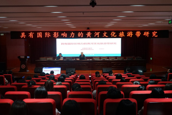 梁留科教授阐述了黄河文化旅游带研究在国家战略中的重大地位以及具有国际影响力的深层原因,提出“挖掘黄河文化的时代价值,建设黄河文化保护传承弘扬承载区”“以黄河国家文化公园建设为抓手,建设中华文化自信标识带”“以国家级文化生态保护实验区建设为抓手,建设世界级文化遗产保护走廊”“以打造黄河文化古都旅游带为核心,打造世界级历史文化旅游目的地”“实施黄河文化精品创作工程,形成中国黄河大品牌”“讲好黄河故事,增强人民文化自信与获得感”“建设黄河干部学院,做好黄河文化时代精神挖掘与当代传播”和“着力推动国际人文中心建设,大力推动黄河文化的国际传播”等主张,并详细列示“做好顶层设计,高起点定位黄河文化旅游带建设”“建立联动机制,高效率推进黄河文化旅游带建设”“组建智库团队,高规格谋划黄河文化旅游重点工程”“注重遗产活化,高颜值构筑黄河文化旅游空间”和“讲好黄河故事,高品质设计黄河文化旅游文旅产品体系”等五大具体举措。梁留科教授重点就如何打造“华夏文明主根、国家历史主脉、治黄史诗主题”三条主游线以及如何利用好“互联网+”等现代信息技术活化黄河文化旅游资源等方面发表了颇具理论深度的见解。梁留科教授高深的学术造诣、深邃的洞察力和独到的见解获得了现场师生的阵阵掌声。