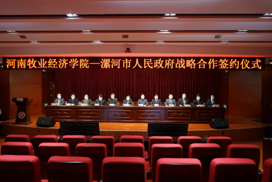 罗士喜、李建涛分别代表新葡萄官网和漯河市人民政府签署“校地战略合作框架协议”;杨宝进代表新葡萄官网分别与舞阳县人民政府签署“共建黄淮肉羊科技研发中心”合作协议、与漯河市城乡一体化示范区管委会签署“共建漯河冷链物流产业研究院”合作协议、与临颍县产业集聚区管委会签署“共建食品绿色智能包装研究院”合作协议、与漯河食品职业学院签署战略合作框架协议。