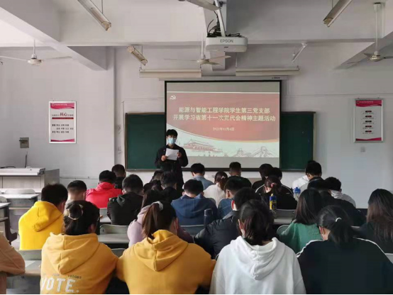 能源与智能工程学院学生党支部开展学习宣传贯彻省第十一次党代会精神主题党日活动。学生党支部书记李永振带领全体党员集体学习楼阳生书记在省第十一次党代会上所作报告,学生党员要切实深刻认识省第十一次党代会的重大意义,准确把握党代会的主题内涵,坚定不移推动会议精神入脑入心、走深走实,要勇担党员责任,永葆奋斗精神,胸怀中原崛起,心系河南出彩,践行初心使命。
