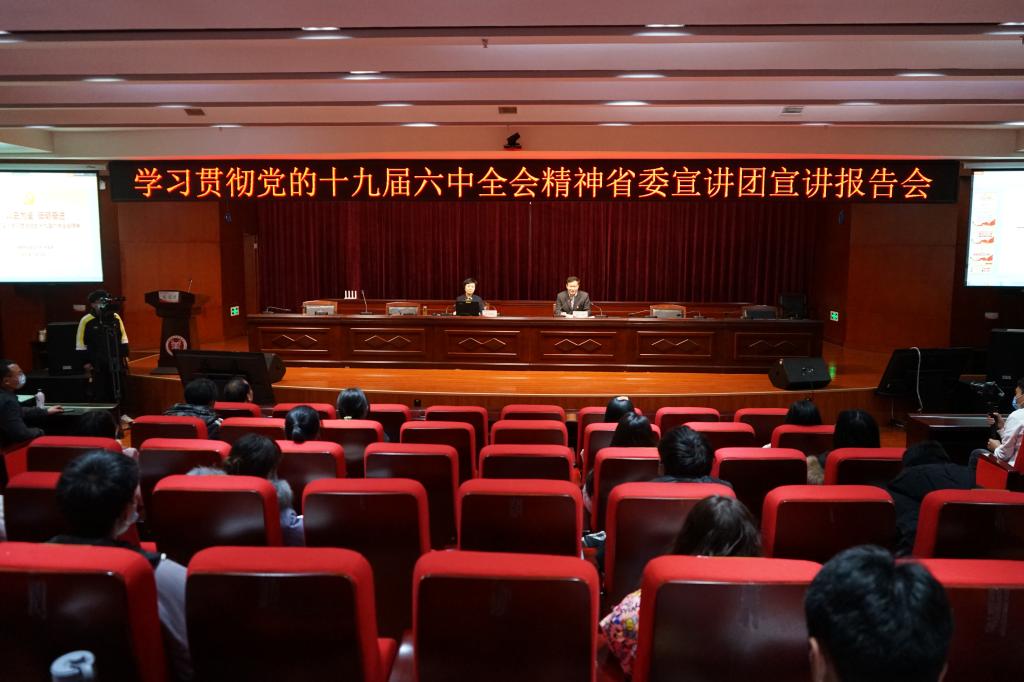 报告会上,朱金瑞以《以史为鉴、砥砺奋进——深入学习贯彻党的十九届六中全会精神》为题,系统讲述了党的十九届六中全会的基本情况和重大意义,重点解析了《中共中央关于党的百年奋斗重大成就和历史经验的决议》的核心要义和丰富内涵。她表示,党的十九届六中全会是在建党百年的重要年份召开的一次重要会议,对统一全党思想和行动、在新时代更好开创党和国家事业新局面,具有重大现实意义和深远历史意义。全会审议通过的《中共中央关于党的百年奋斗重大成就和历史经验的决议》通篇融汇了百年来中国共产党践行为中国人民谋幸福、为中华民族谋复兴的初心使命所进行的奋斗、牺牲和创造,深刻揭示了“过去我们为什么能够成功、未来我们怎样才能继续成功”,是一篇马克思主义的纲领性文献,是新时代中国共产党人不忘初心、牢记使命的政治宣言,更是党团结带领人民以史为鉴、开创未来的行动指南。