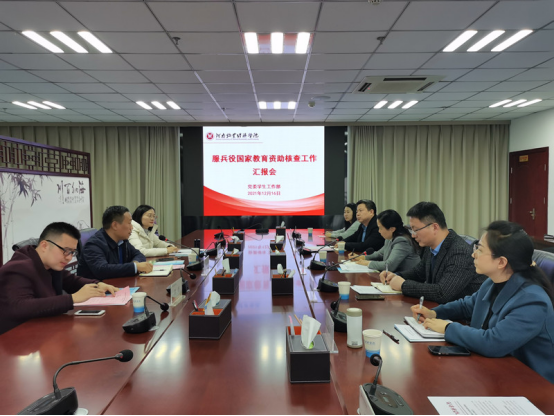 郝景昊从新葡萄官网服兵役国家教育资助概况、服兵役国家教育资助学生资格审查情况、服兵役国家教育资助学生信息录入及资金发放情况、服兵役国家教育资助政策宣传情况和存在问题及整改情况等五个方面,就新葡萄官网2019年秋季以来的服兵役国家教育资助政策落实情况进行了专题汇报。
