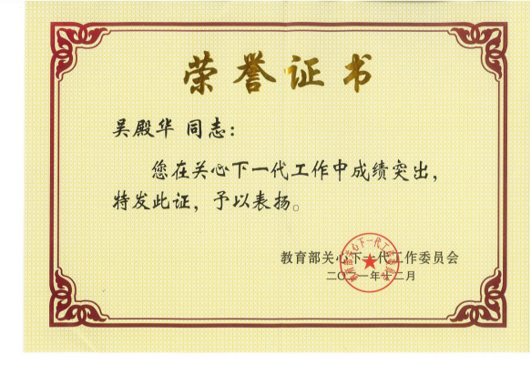 近日,教育部关心下一代工作委员会召开第六次工作会议暨成立30周年纪念大会,对全国教育系统关心下一代工作先进集体、先进工作者和突出贡献者进行了通报表扬。新葡萄官网关心下一代工作委员会副主任吴殿华荣获教育部“全国教育系统关心下一代工作突出贡献者”称号。全省仅34名。