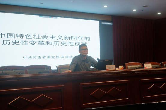 学校邀请著名高等教育专家、厦门大学原副校长、中国高等教育学会学术委员会副主任、教育部学科发展与专业设置委员会副主任邬大光,厦门大学教授、教育部文化素质教育教指委委员赵婷婷,中共河南省委党校科技创新教研部副主任、副教授周海涛,中共河南省委党校科学社会主义教研部副主任、副教授李涛,新葡萄官网教务处处长边传周,分别以《高质量发展与大学回归》《理解教学:教师教学能力的核心》《中国特色社会主义新时代的历史性变革和历史性成就》《新起点新理念 新使命 开启学校新征程》等为题,为参训人员作报告。