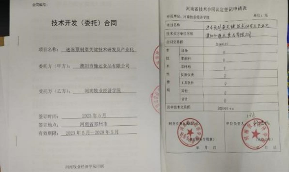 近日,学校预制菜团队与濮阳慷达食品有限公司签订“速冻预制菜关键技术研发及产业化”横向项目。本项目由食品与生物工程学院(酒业学院)预制菜团队的成员侯银臣博士主持,杨盛茹老师作为主要参与人员。