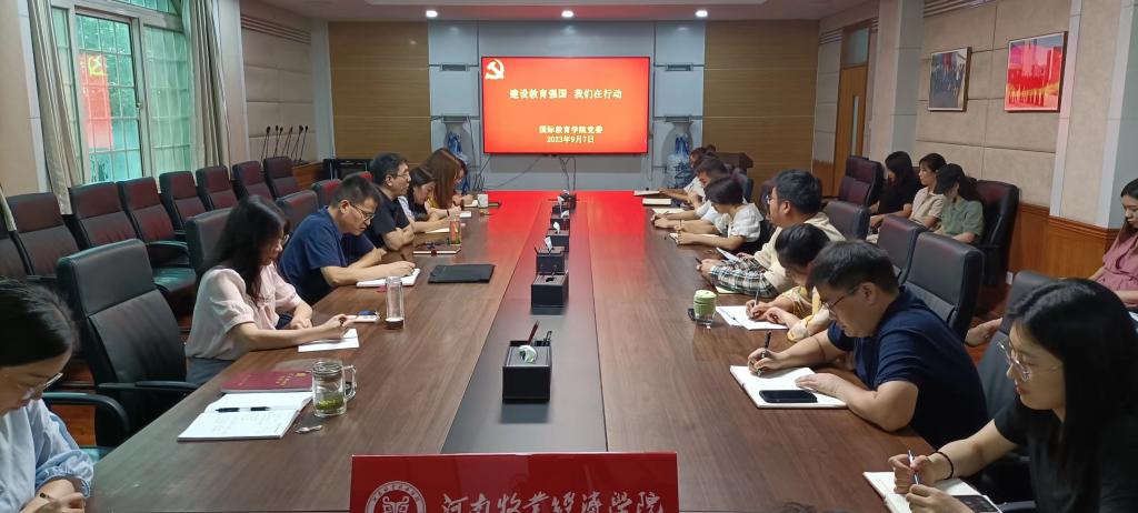 在第39个教师节来临之际,为充分展现国际教育学院教师队伍立德树人、自信自强的精神风貌,营造尊师重教的良好氛围,近日,国际教育学院在教学办公楼113会议室组织开展了“建设教育强国 我们在行动”专题活动。学院全体教职工参加活动。活动由副院长王胜男主持。